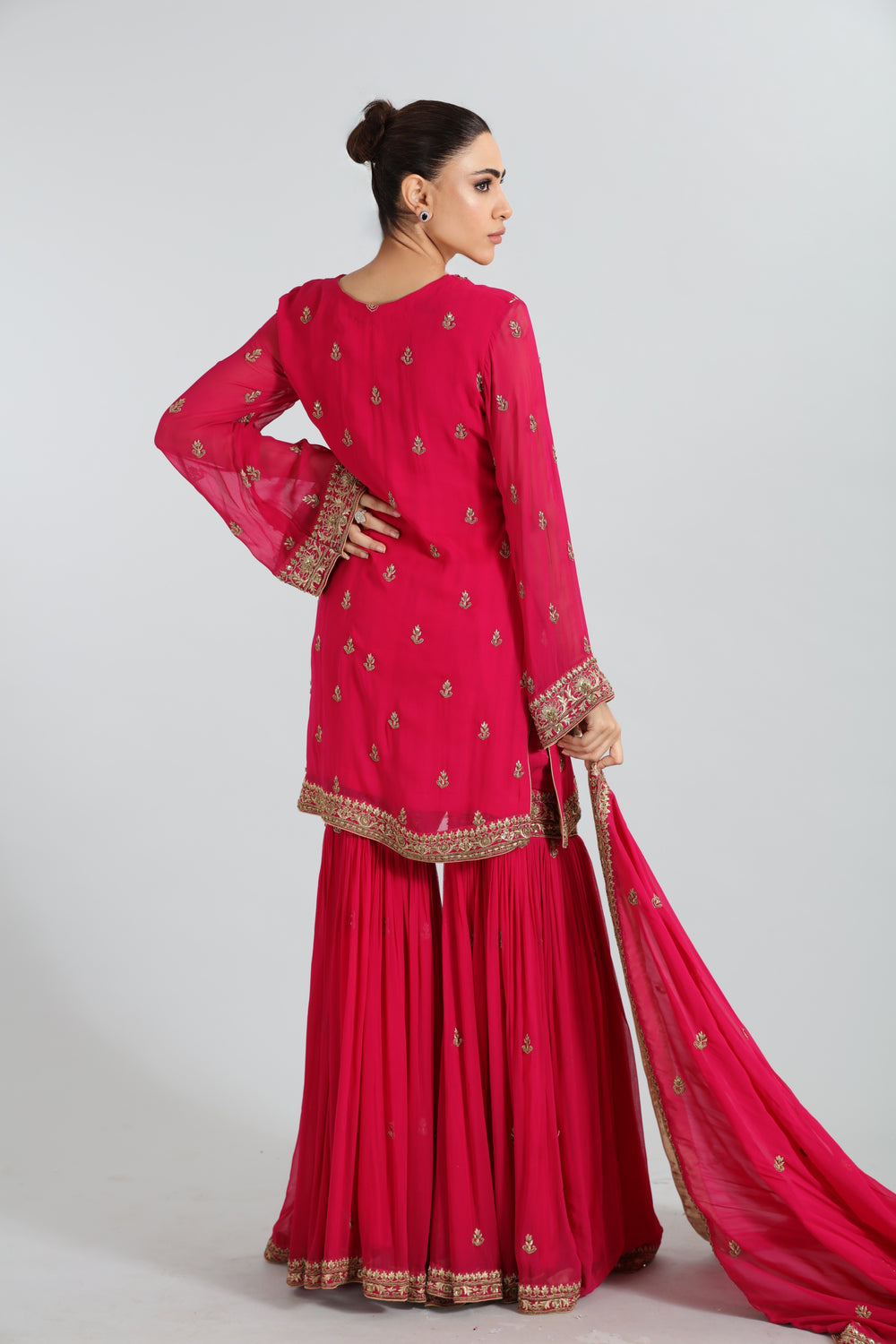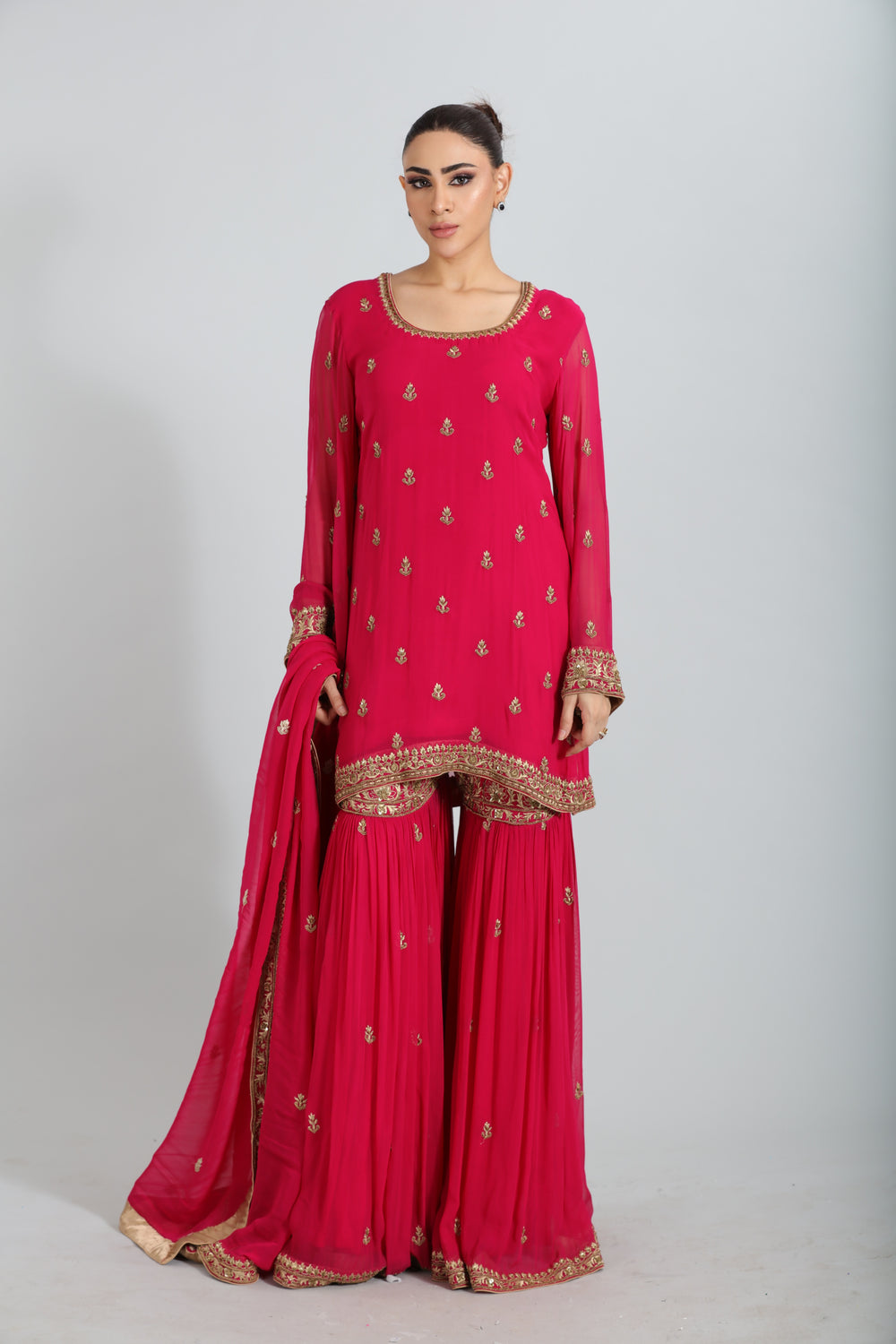Graceful yet powerful, this sharara captures attention with subtle grandeur. Designed for modern royalty, it enhances every special moment.